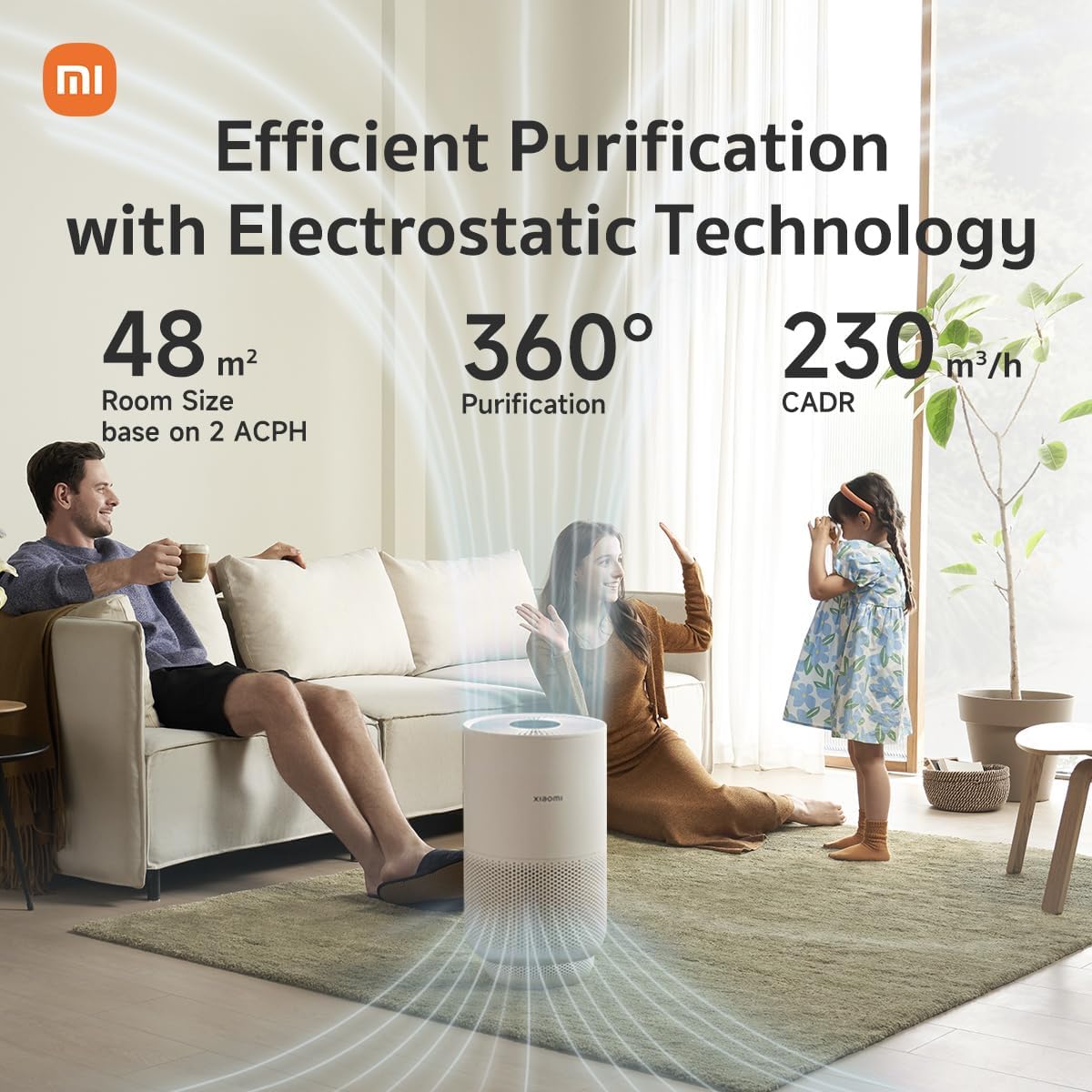 Despite its compact size, the Xiaomi Smart Air Purifier 4 Compact effectively cleans rooms up to 48 m², maintaining a fresh and comfortable environment for your family. Featuring whisper-quiet operation and a minimalist design, it blends seamlessly into any room while keeping your air pure and safe.